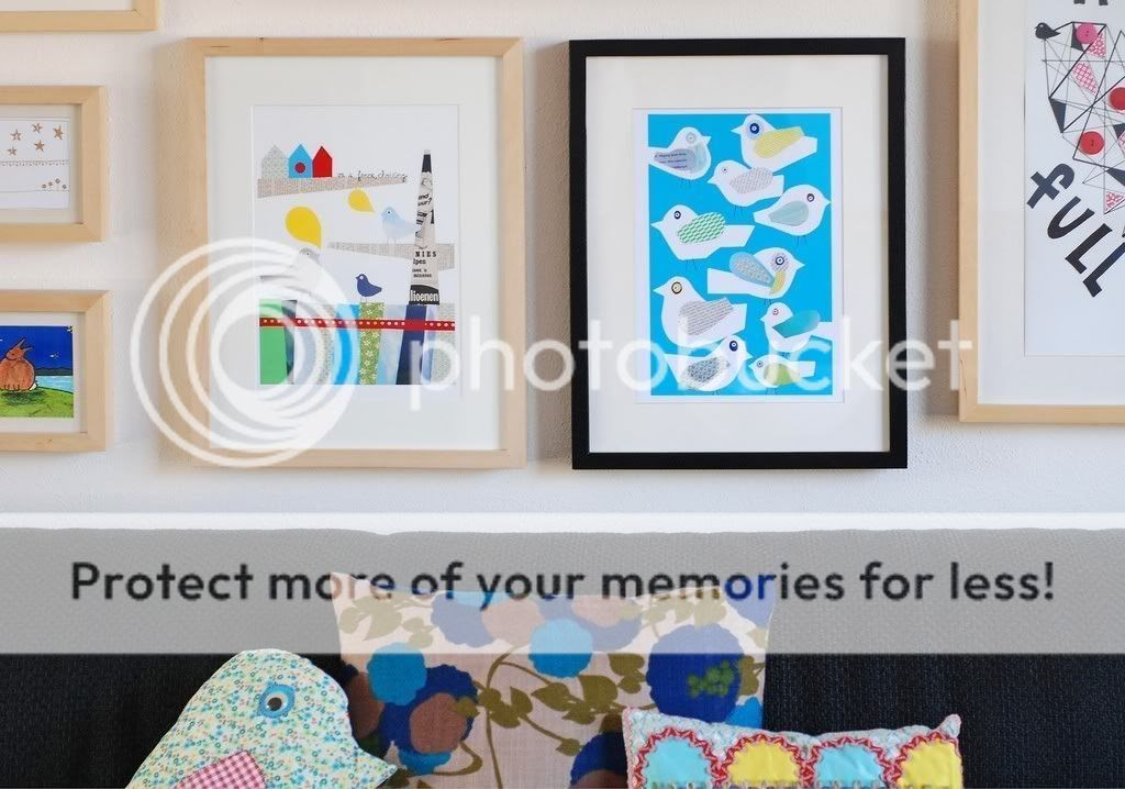 I came across Nina's blog a few weeks ago, and then last week she was on the Etsy front page as a featured seller which reminded me of her fresh and wonderfully light-hearted creations. As well as making colourful collages, she screen prints her designs onto vintage tablewear: the triangle-print jug and sugar bowl are my favourite items in her shop. She has the most beautiful craft area... I especially love the yellow and blue lamps.